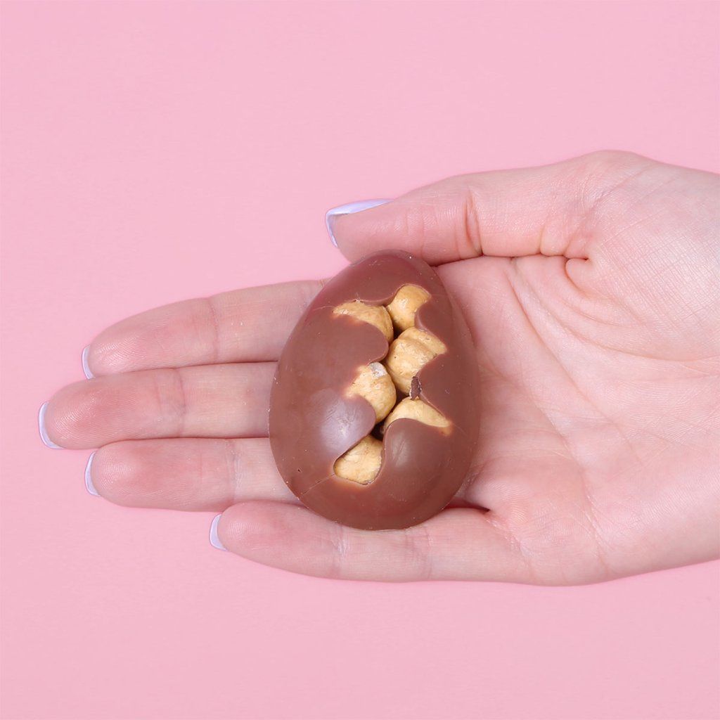 Velikonoční vajíčko z čokolády plné překvapení. Roztomilé tradiční vajíčko vyrobené ručně z naší nejlepší čokolády a s láskou naplněné spoustou překvapivých dobrot. Spojení chutí přírody v podobě lískových oříšků umocněného sílou kakaových bobů a naší bean to bar čokolády.