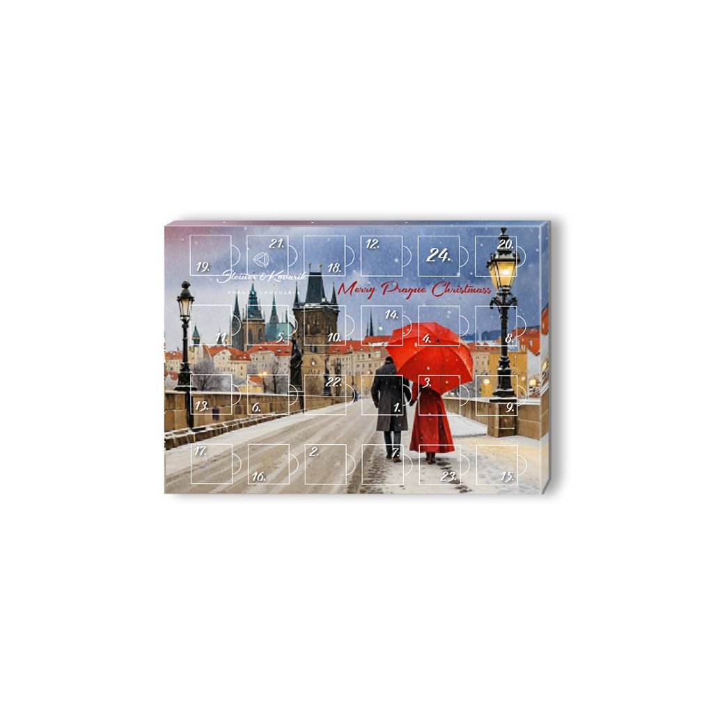 Pro letošní adventní kalendář jsme využili nostalgii a romantiku staré Prahy, která vykouzlí ve vašem domově útulnou vánoční atmosféru. S naší kvalitní, jemnou a voňavou mléčnou čokoládou se pak promlsáte až ke Štědrému dni.